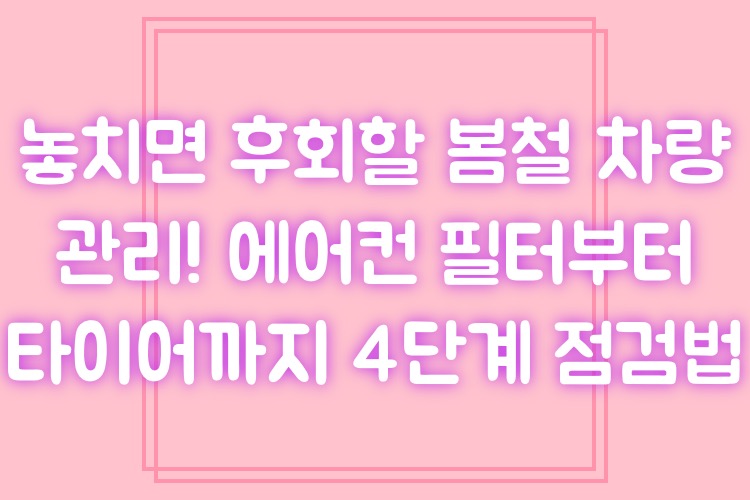 이와 함께 정기적인 점검과 예방 정비를 통해 차량의 전반적인 건강을 유지하는 것이 중요합니다. 여러분도 이 간단한 관리 방법들을 실천하여, 봄꽃 구경과 함께 깨끗하고 안전한 드라이브를 즐기시기 바랍니다. 꽃 구경 가기 전, 손쉽게 할 수 있는 차량 관리 4가지 방법을 통해 여러분의 소중한 차량과 건강을 지키세요.