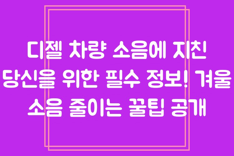 디젤 차량 소음에 지친 당신을 위한 필수 정보! 겨울 소음 줄이는 꿀팁 공개