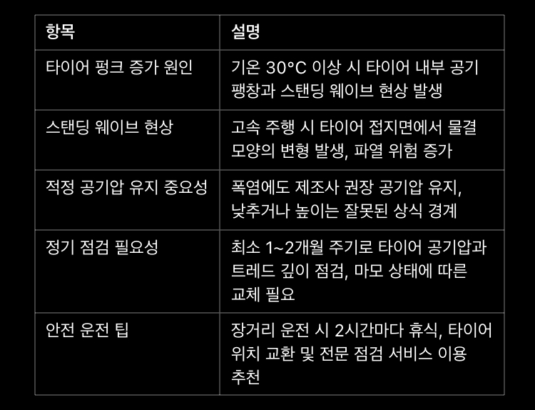 #폭염타이어관리 #타이어공기압 #스탠딩웨이브 #여름철안전운전 #타이어점검