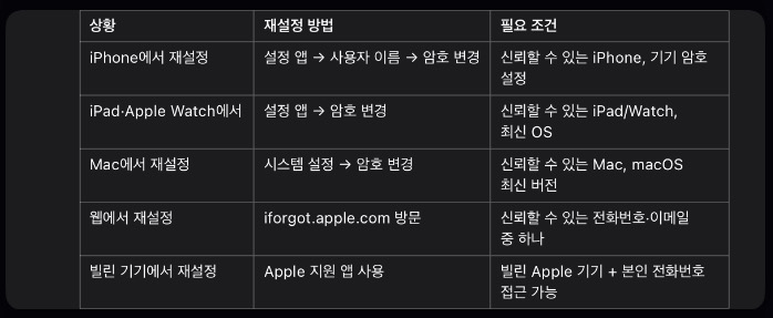 지금부터 아이폰iPhone, 아이패드iPad, 맥Mac 등 다양한 기기를 사용하는 분들을 위해, 암호 재설정 방법을 낱낱이 파헤쳐 보겠습니다. 그리고 신뢰할 수 있는 기기가 전혀 없을 때도 할 수 있는 웹 재설정 방법, 심지어 지인의 기기를 빌려서 하는 방법까지 알차게 정리했습니다.
