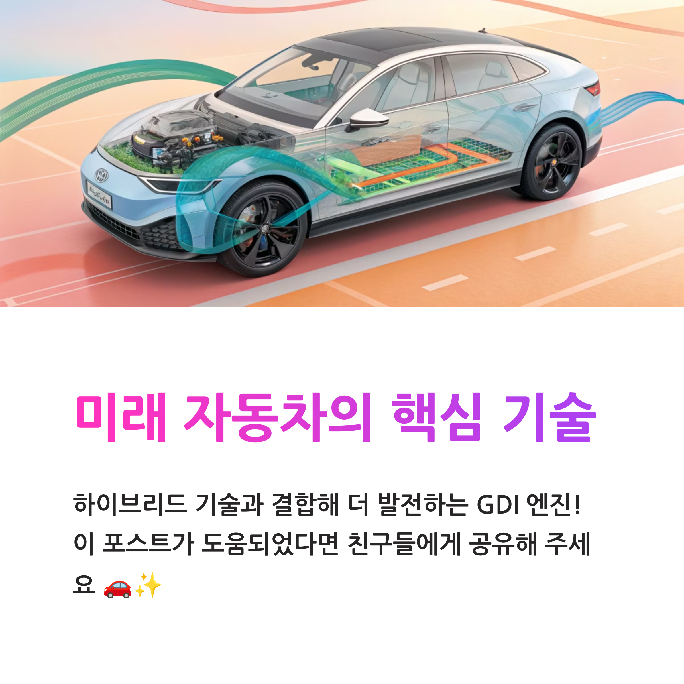 GDI 엔진은 하이브리드 및 다운사이징 기술과 결합되어 친환경적이면서도 효율적인 엔진 시스템으로 발전할 것이며, 내연기관 기술의 한계를 극복하는 중요한 역할을 할 것으로 전망됩니다.
