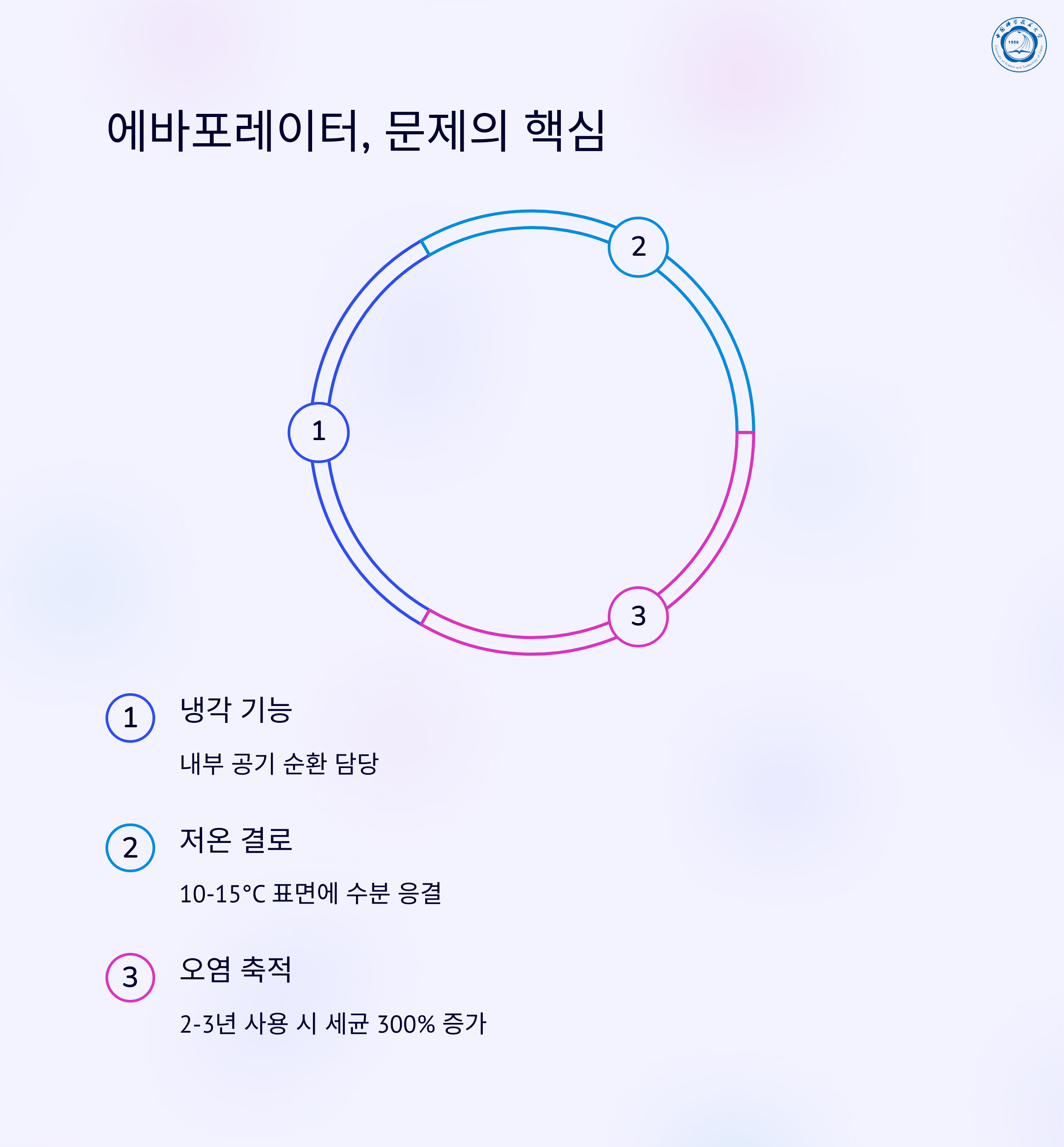 - 에바포레이터 내부 습기 → 곰팡이 번식