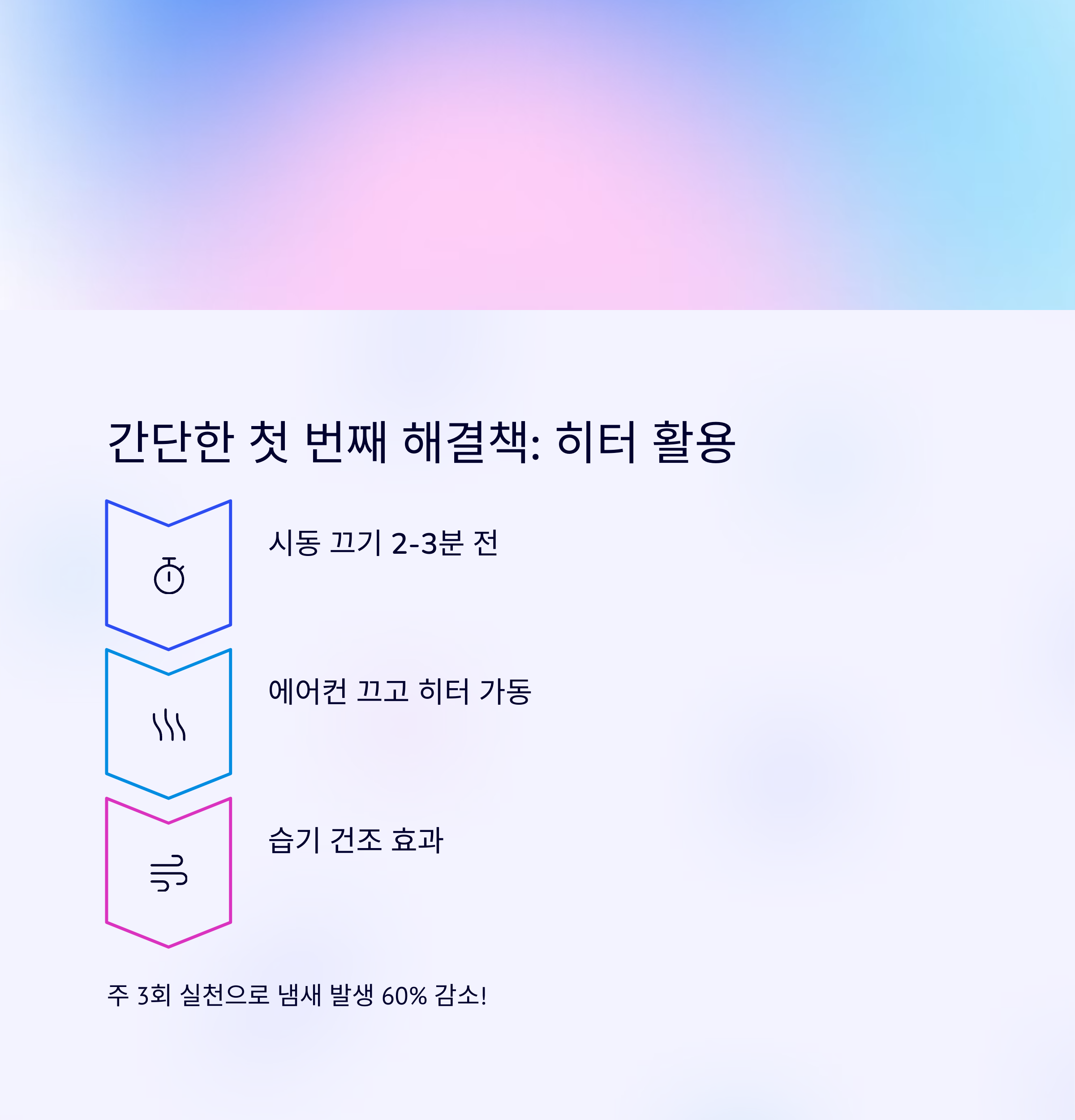 - 에어컨 OFF 타이밍: 목적지 도착 5분 전에 에어컨을 끄고 외기 순환으로 전환해 습기를 제거합니다.