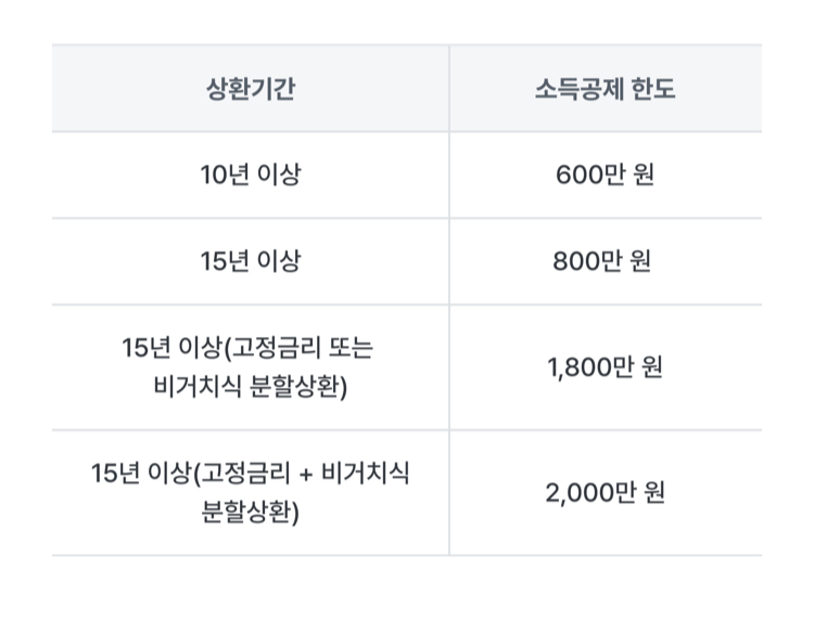 이번 상향 조정으로 소득공제 한도가 대폭 확대되었습니다. 상환 기간이 10년 이상일 경우 600만 원, 15년 이상이라면 최대 2,000만 원까지 공제가 가능합니다. 15년 이상 대출 상환 중 고정금리나 비거치식 분할상환 조건이 포함되었다면 더 높은 한도를 기대할 수 있습니다. 단, 이런 혜택을 받기 위해선 반드시 조건을 충족해야 한다는 점을 잊지 마세요!