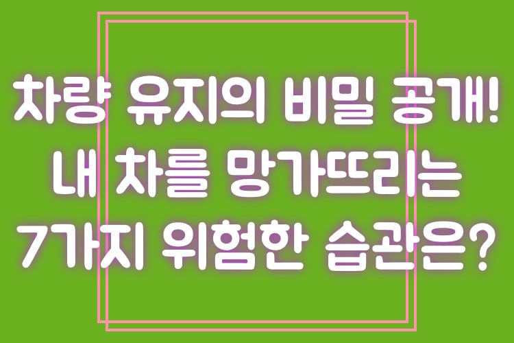자동차를 오랜 시간 안전하게 타고 다니기 위해서는 세심한 관리와 정기 점검이 필수입니다. 반대로 몇 가지 습관만 잘못된다면, 당신의 소중한 차량은 순식간에 수명을 단축하고, 예기치 못한 사고로 이어질 수 있습니다. 저 역시 여러 차례 차량 관리 소홀로 인한 불편을 겪으며, 올바른 정비와 관리의 중요성을 몸소 느꼈습니다. 이 글에서는 최신 정보와 저의 경험, 그리고 여러 전문가들의 연구 결과를 토대로 내 차를 망가뜨리는 7가지 방법과 그에 따른 대처법을 자세하게 소개합니다.