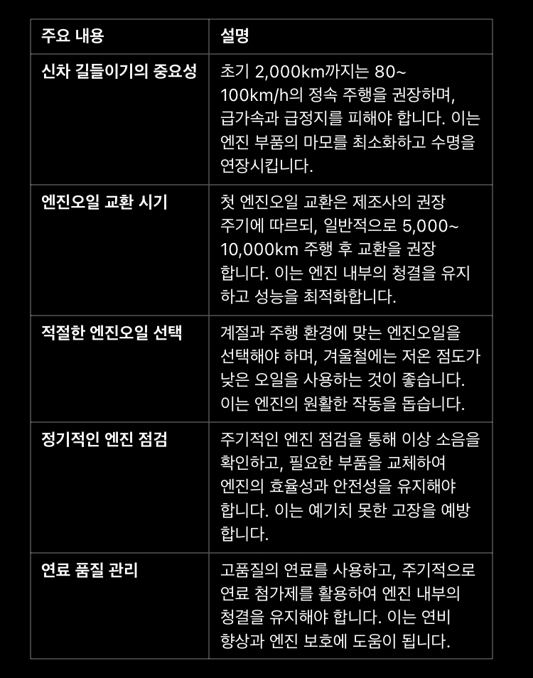 #신차관리 #엔진관리팁 #차량유지보수 #엔진오일교환 #연료첨가제