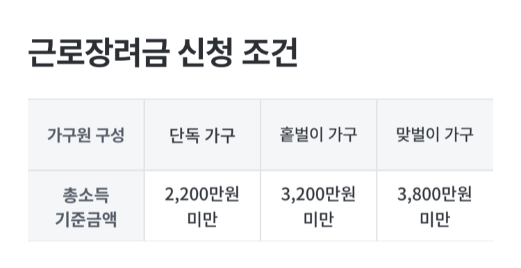 근로장려금 신청 조건 한눈에 보기