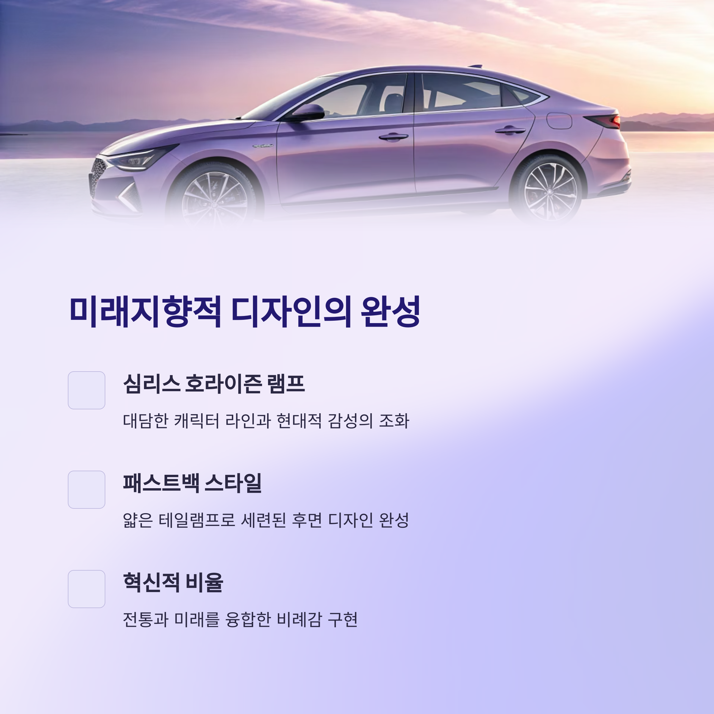 | 🚘 디자인 변화 | 미래지향적 LED 라인 + 루버 테일램프 |