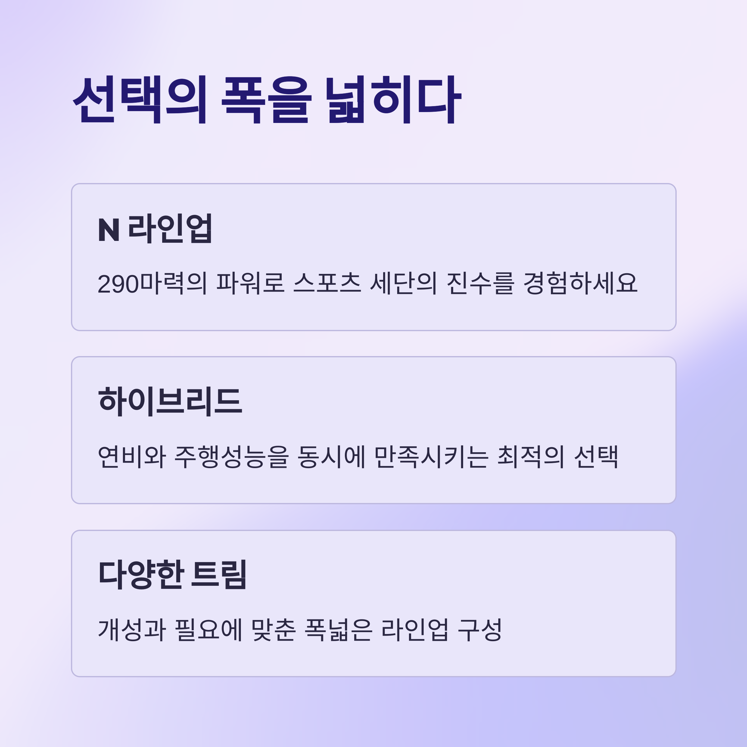 | ⚙️ 성능 향상 | 최대 290마력 N 모델 + 친환경 라인업 |