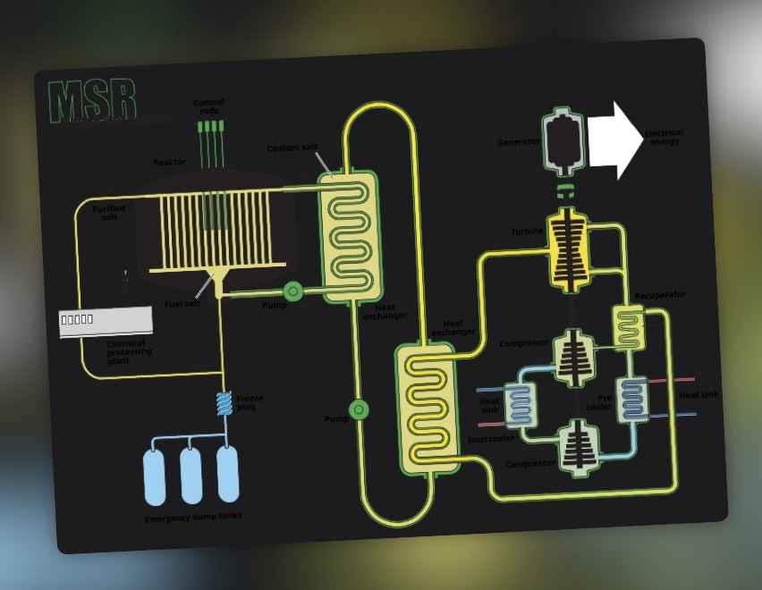 Kairos Power는 오하이오주에 용융염 정제 공장을 설립하여 Hermes 프로젝트에 필요한 고순도 FLiBe를 생산하고 있습니다. 용융염 냉각제의 사용으로 원자로는 수냉식 시스템보다 높은 온도와 낮은 압력에서 작동할 수 있어, 전체적인 발전소 효율을 높이고 냉각제 손실 사고의 위험을 줄일 수 있습니다.