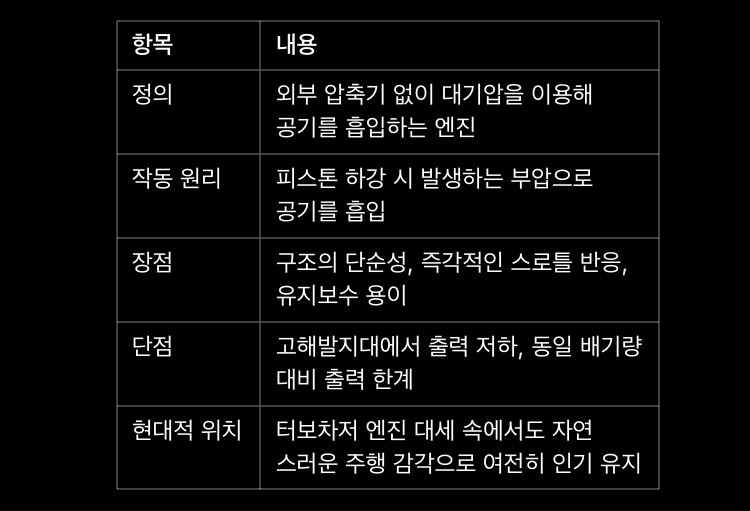 NA 엔진의 주요 장점과 매력